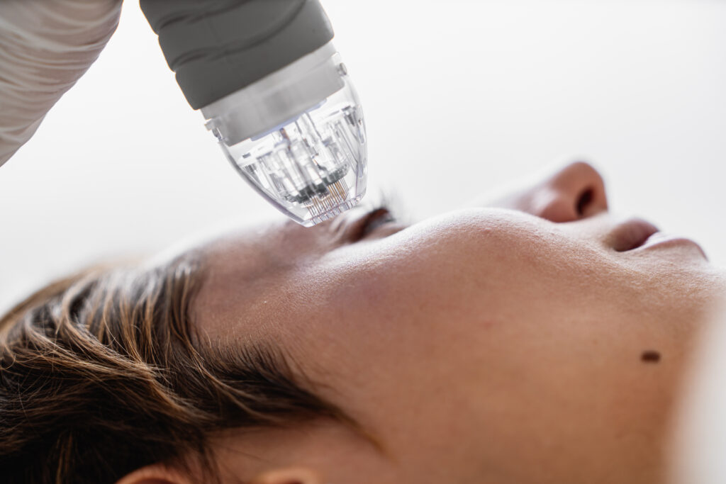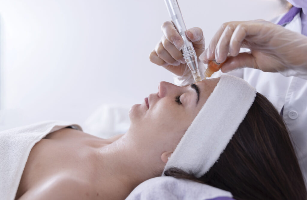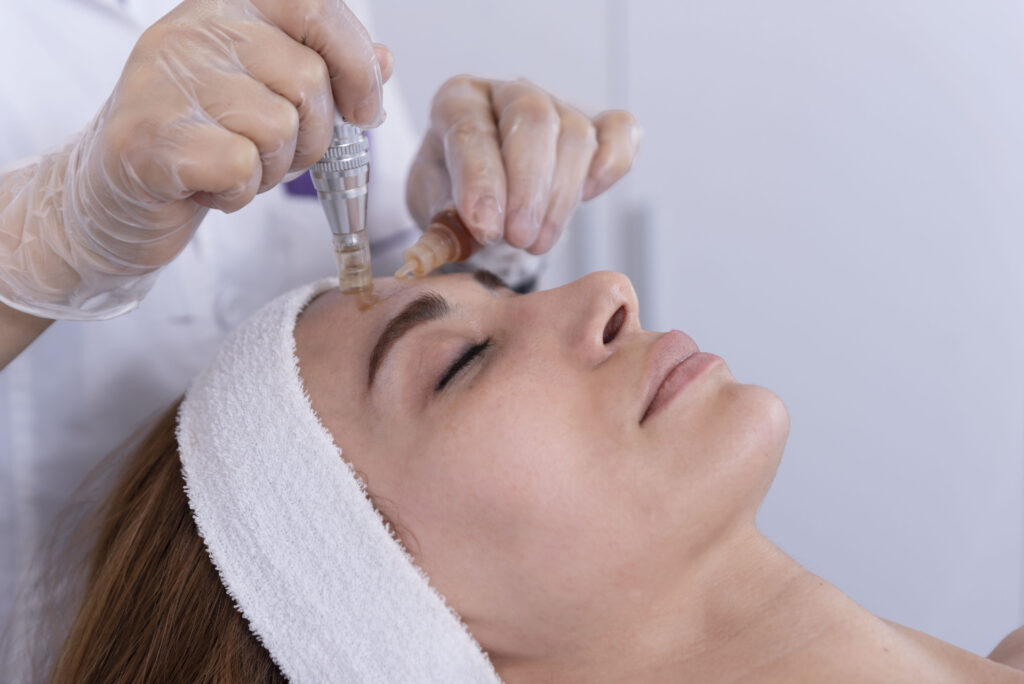 Aplikace exozomů a lososího spermatu (PDRN) – jemná injekční mezoterapie nebo mikrojehličkování dle indikace a oblasti.
